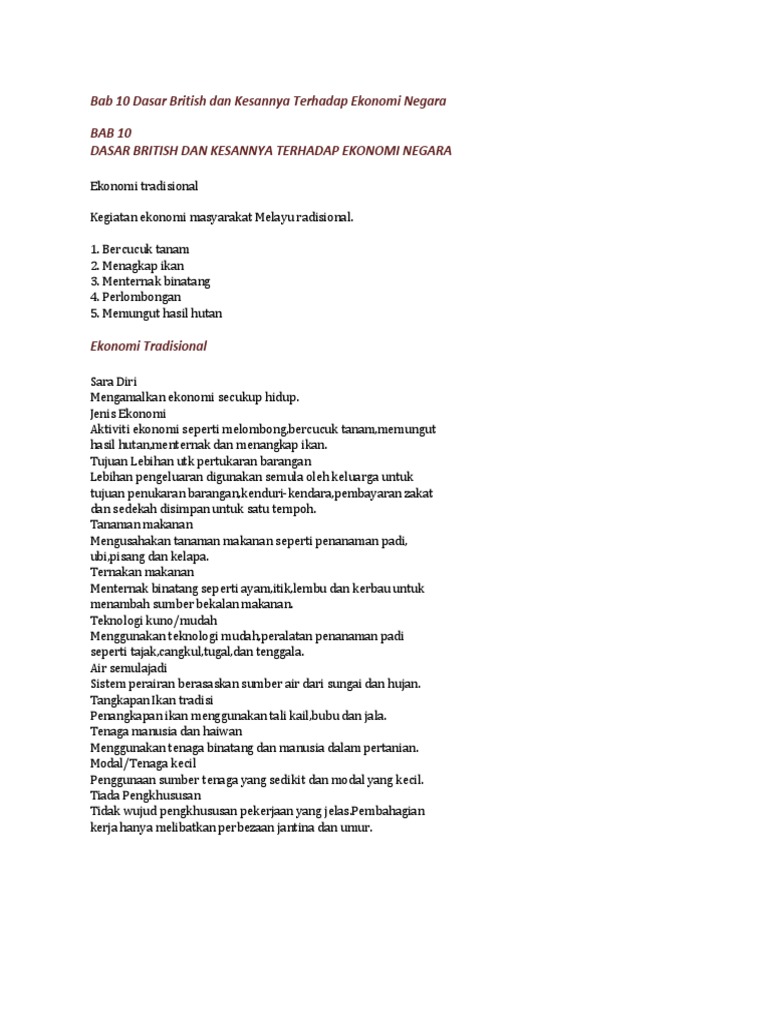 Bab 10 Dasar British Dan Kesannya Terhadap Ekonomi Negara Pdf